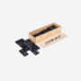 Zapakowane w stylowym drewnianym pudełku z zasuwaną pokrywką. W jej skład wchodzi 28 elementów – kostek.